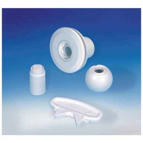 Einlaufdüse für Folienbecken komplette Düse mit Dichtungen und Schrauben, sowie Kontermutter R 2" mit Dichtungen. Außen 2", innen 50 mm Klebeanschluss. Multiflow-Kugel 14 mm, kann auf 20 oder 25 mm vergrößert werden. Bei Lieferung von 1 VE = 12 Stück werden Ausschlagstempel und Schlüssel mitgeliefert.