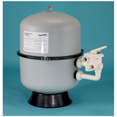 Die Filterbehälter, aus glasverstärktem Polypropylen zeichnen sich durch Langlebigkeit und Korrosionsbeständigkeit aus. Die beiden Filterhälften werden durch einen Nirosta-Spannring zusammengehalten und ermöglichen einen bequemen Wechsel des Filtermaterials. Ein EPDM-O-Ring sorgt für die absolute Dichtigkeit. Eine automatische und zusätzliche mauelle Entlüftung sind eingebaut. Ebenso eine Entleerung mit Entleerungshähnchen und ein Monometer zum kontrollieren des Verschmutzungsgrades des Filtersands. Das seitlich montierte Sechswegeventil mit den Stellungen Filtern, Rückspülen, Klarspülen, Geschlossen, Zirkulation und Entleeren sorgt für ein einfaches Einstellen des benötigten Betriebszustandes.