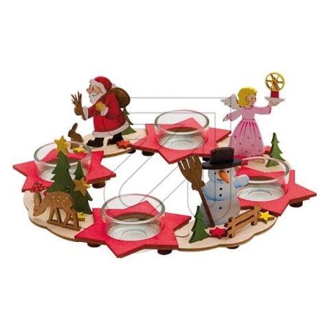 mit Grundelemente Adventskranz, mit Weihnachtsmann, Engel, Schneemann, Bäume, Reh, 4 Glashalter für Teelichter und Dekoteile für die individuelle Gestaltung, Holzarbeit natur farbig gebeizt